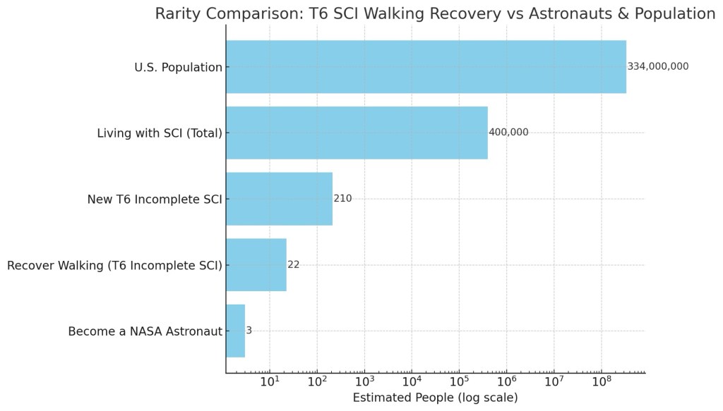 🧠 So only 9 to 36 people in the entire U.S. per year regain independent walking from a T6 incomplete SCI.