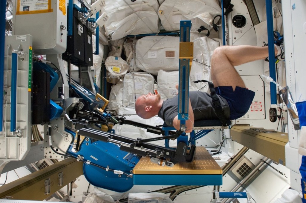 Strength training turns out ties in with the first item I listed, Bone Mass Density, but I broke it out as its own individual item because our muscles, nerves, tendons, and the rest of our musculoskeletal system are also susceptible to the lack of gravity as well! The idea in Neuroplasticity, the principle ‘Use it or Lose it’ explains how neural circuits and muscles that are not actively engaged in performing tasks for an extended period of time begin to degrade. Quite literally, this means if we do not use an area of our brain for a prolonged time, we will lose the function that was previously stored there. For example, “if an individual were to have a stroke on the right side of their brain, they may lose some function in their left arm. If because it is more difficult to complete tasks with their left arm, they simply use their right arm for all tasks to compensate, their brain will reorganize so that less space is dedicated to the function of the left arm thus limiting potential for recovery.” [3] This is exactly what I am combating on a daily basis with my exercises, micro-movements, PT, OT, Pilates, standing frame and floor work! Figuring out how to constantly be loading parts of my body that aren’t being used as regularly, and maintain that space in my brain is something I have to keep up with on a daily basis! Turns out also, astronauts need to exercise for 2+ hrs each day. I would say that is extremely close to how many hours each day I am setting aside for all of the items I described above, but usually more than just 2hrs. ARED is one of the devices that Astronauts use while in space to help mimic typical strength training equipment.