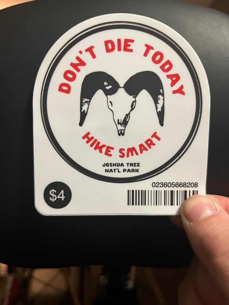 We ended up getting some fun souvenirs from Joshua Tree, and I couldn’t help but admire this particular design, “Don’t Die Today”.